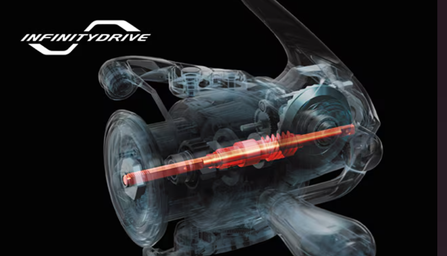 インフィニティドライブは簡単にいうとシマノの「高負荷がかかった状態でもリールを効率よく巻き上げられる技術」のことで、通常はリールに高負荷がかかった時にメインシャフトがピニオンギアに接触して摩擦を生むためリールを巻き上げる際にパワーロスが発生していました。