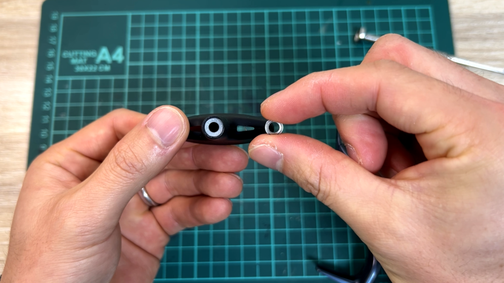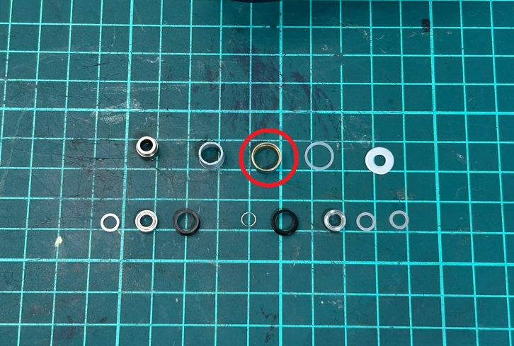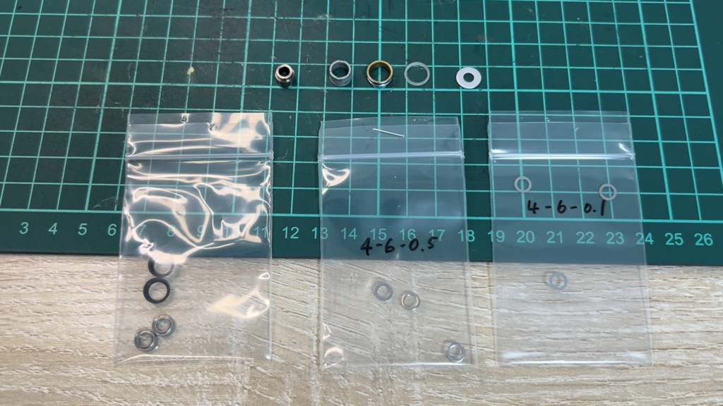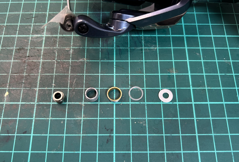 僕の場合、少しネジを緩めても全くベアリングが回らなかったので、0.5のワッシャーを1枚外してセットしたらスルスルと回るようになりました。