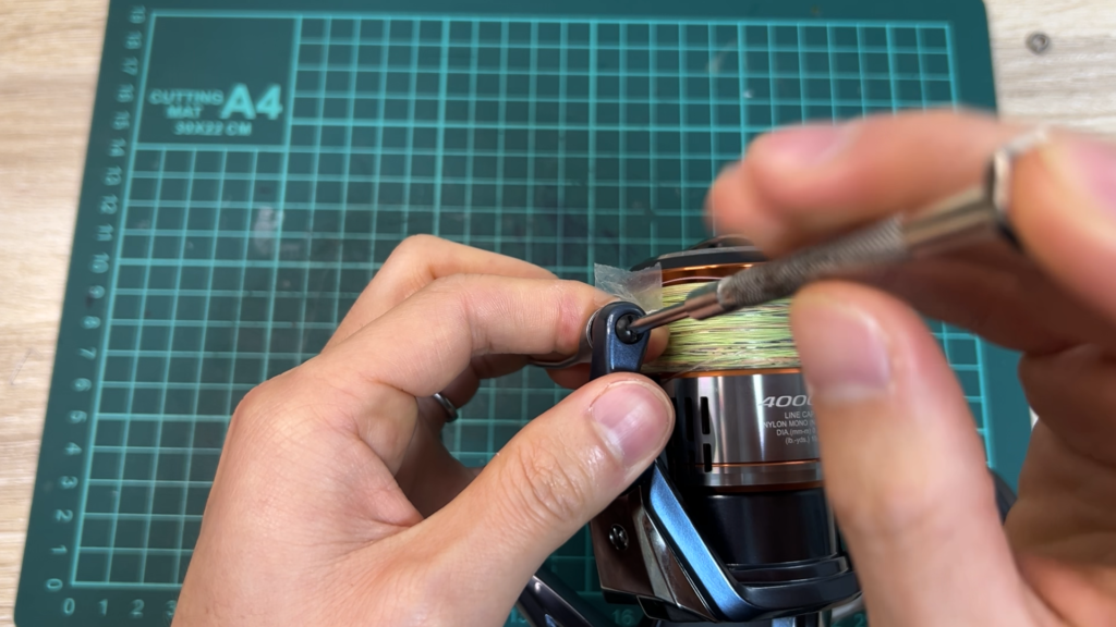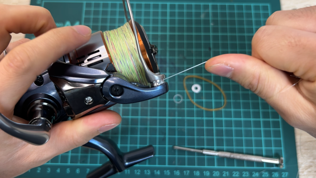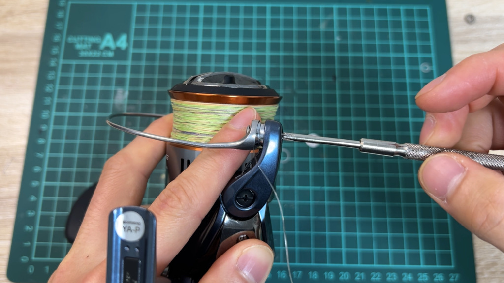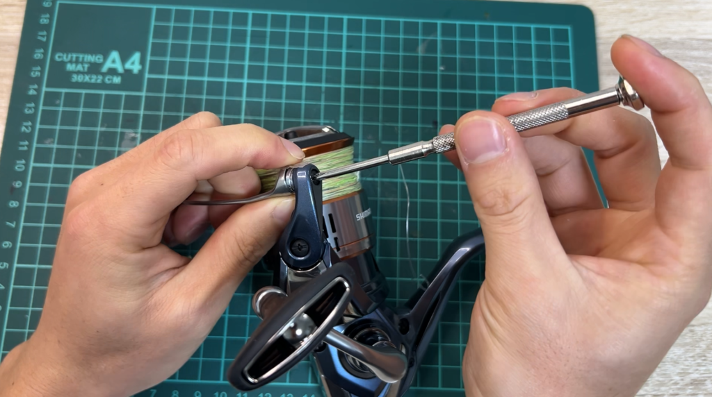 ここで注意点があって、ネジを締めすぎるとラインローラーが回らなくなってしまいます。