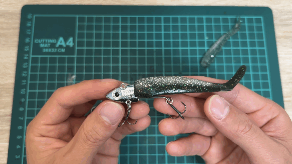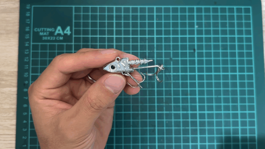こちらのダイソーVJ12g、泳がせると非常に良い動きをするのですが、キャスト中の姿勢は悪くクルクルと空中で回転してしまいます。