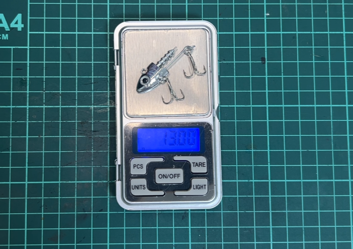 ちなみにジグヘッドの重さについてですが、12gというのがフックやリング込みなのか、それともジグヘッドのみの重さなのかわからなかったので測ってみました。