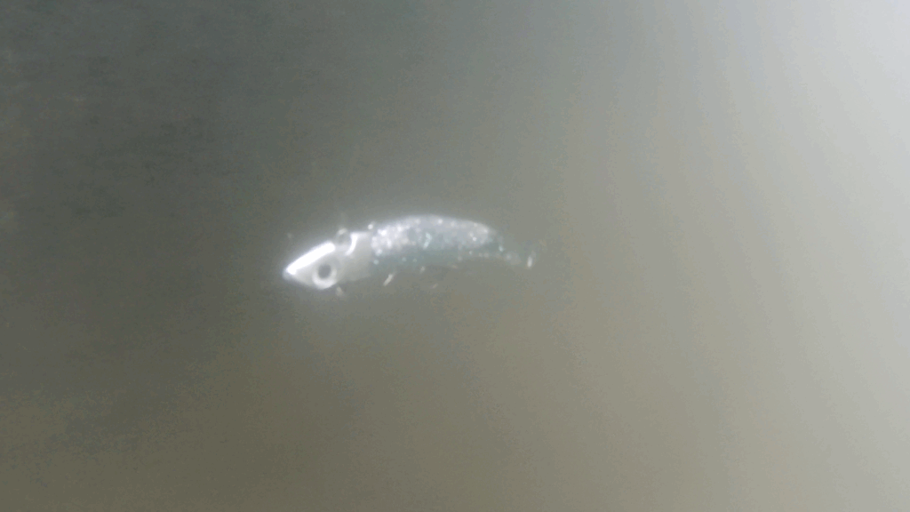 水深1.5m程度のシャローエリアで泳がせてみたのですが、やはりウェイトが軽いこともありしっかりボトムを切って泳がせることができました。