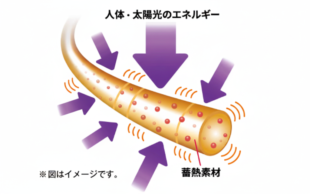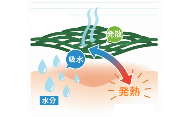 まず発熱についてですが、これは繊維が体から出た水分に反応して熱を発する仕組みのこと。