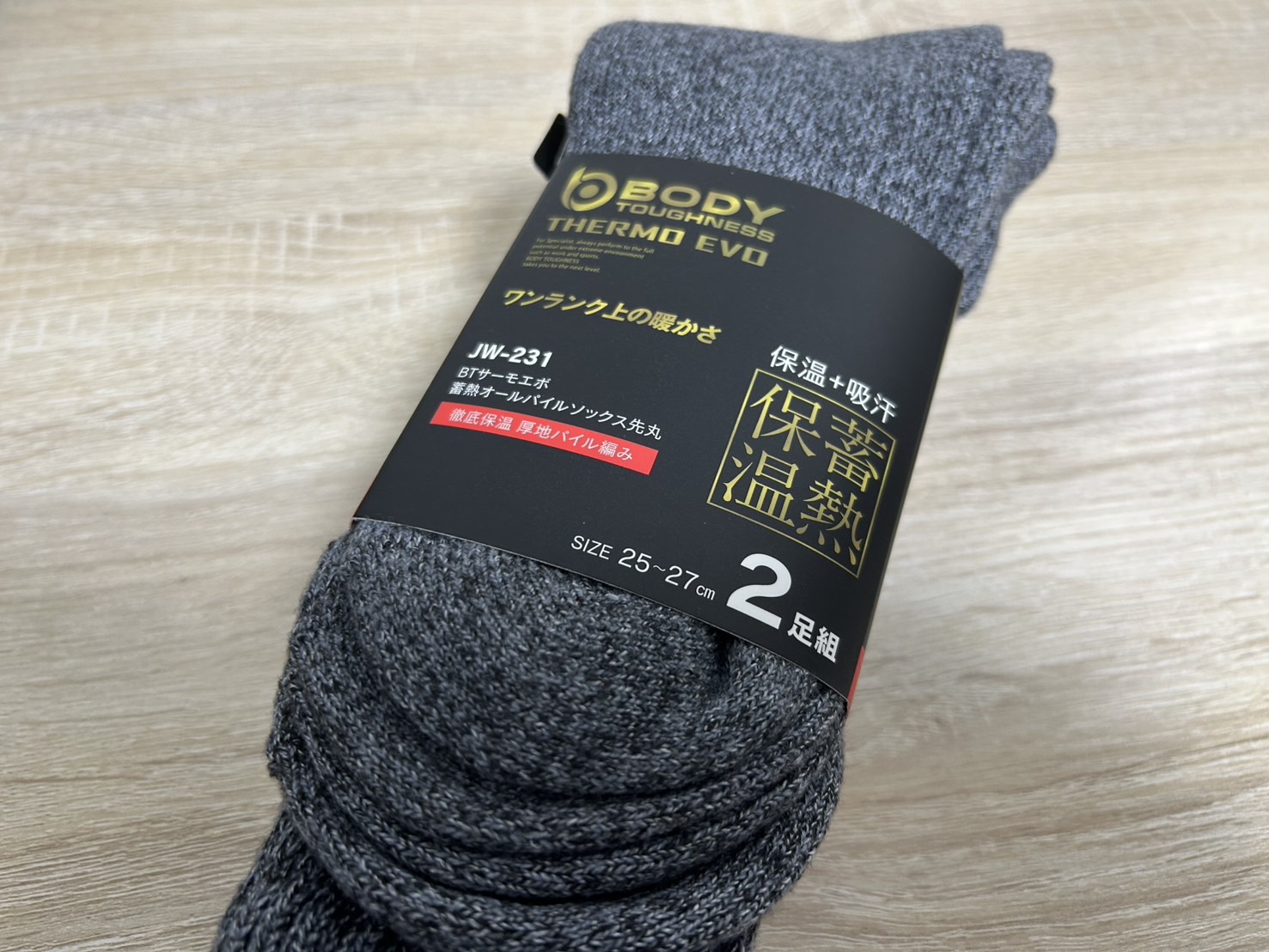 あまりに暖かいとの評判から、同じ素材を靴下に転用したのが今回紹介するBTサーモエボ蓄熱オールパイルソックスという訳です。