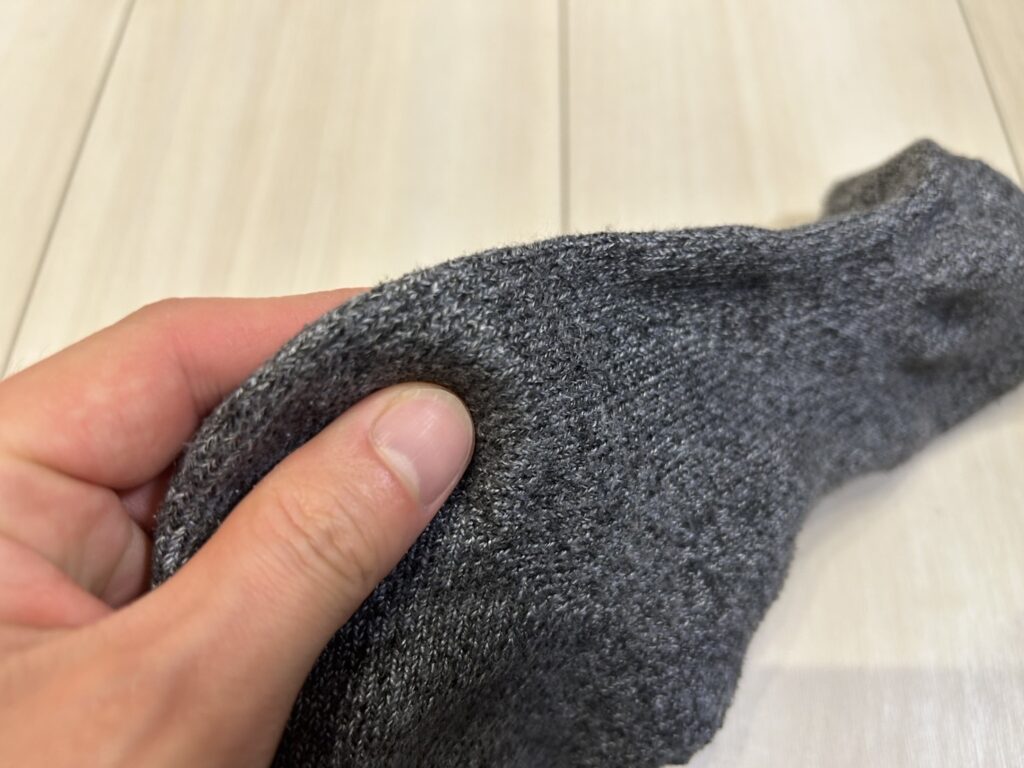 また冬の防寒用ソックスといえば気になるのが汗冷えですが、汗冷えに関しては指と指の間などの布が触れていない部分については多少汗を感じるものの、水分を外に逃がす機能が高く、防寒用ソックスの中ではかなり蒸れにくいような気がします。