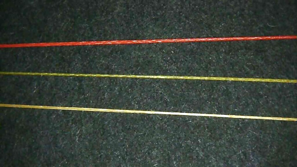 一応、太さ0.148mmのエックスエイト0.8号(一番下)も用意してみましたが、デュラセンサーと太さが変わらないので、REDBULLの表記は正しそうに見えます。