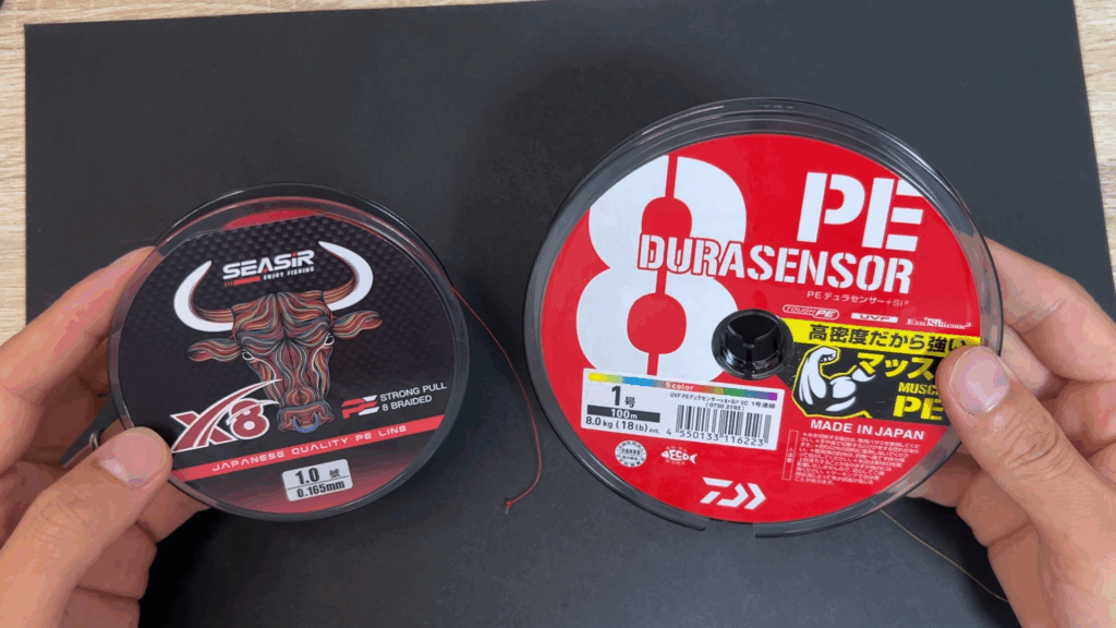 確認すると1号の太さは0.165mmで、シーザーのX8 1号と同じ太さをしているのですが、海外製ということで表記が間違っている可能性があります。