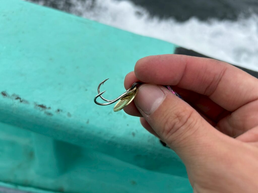 メタルマジックを始め多くのブレードジグはシングルフックが標準装備ですが、これをダブルフックに変えることでバラシがかなり減ります!
