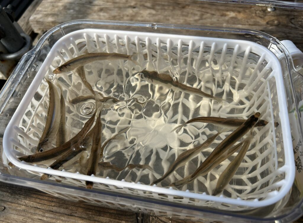 - 釣ったワカサギを保管する