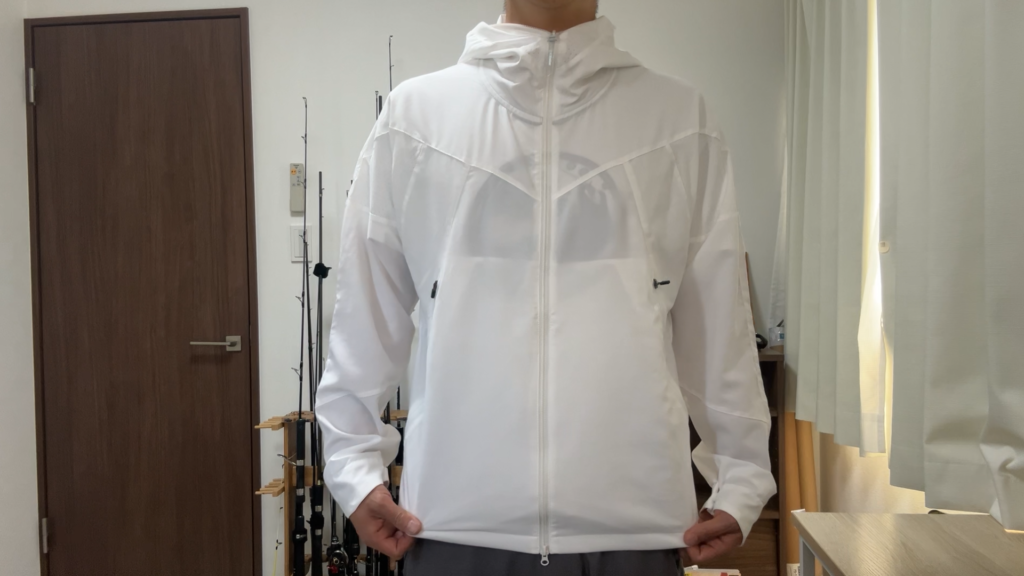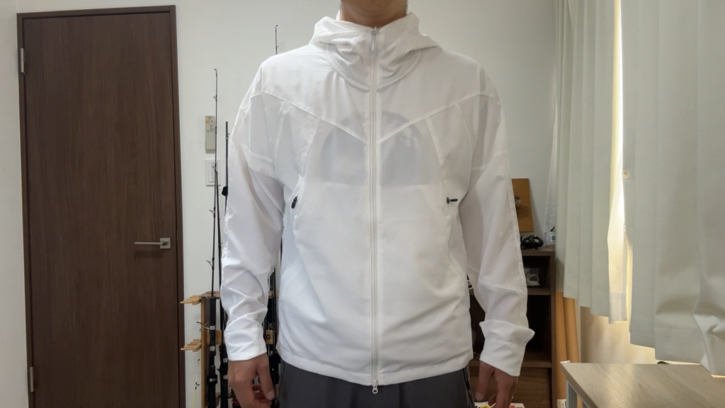 XShelter暑熱αフーディを実際に着用した様子がこちら。