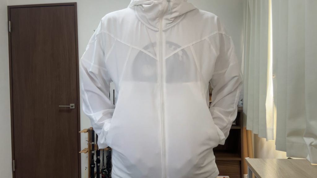 なので触れ込みのように”着た方が涼しい”というのは半分正解で、炎天下に晒されている時は日差しの熱をカットしてくれるので着た方が涼しいです。
