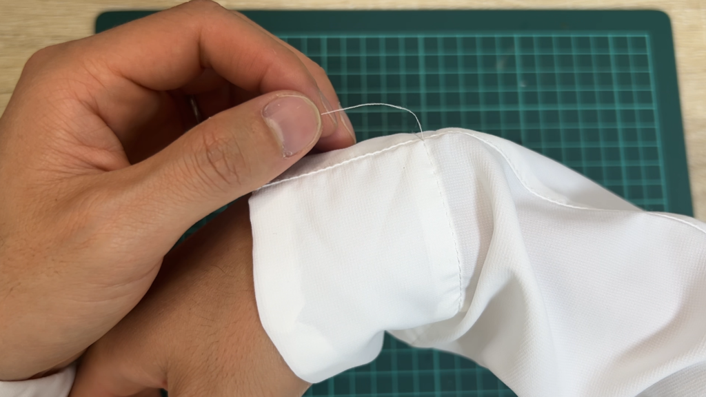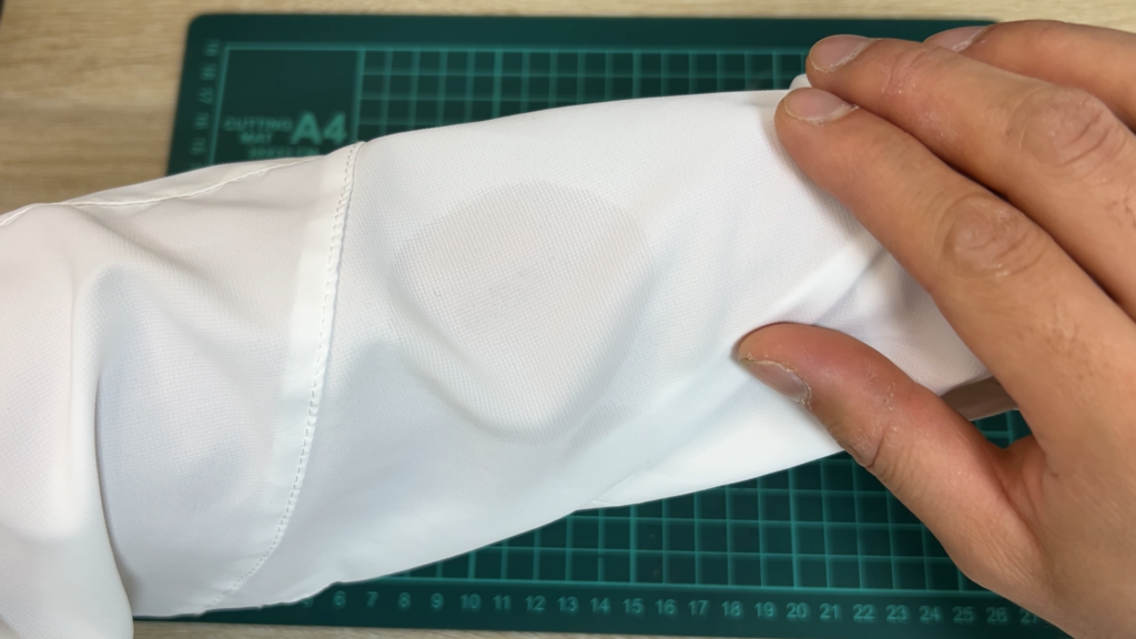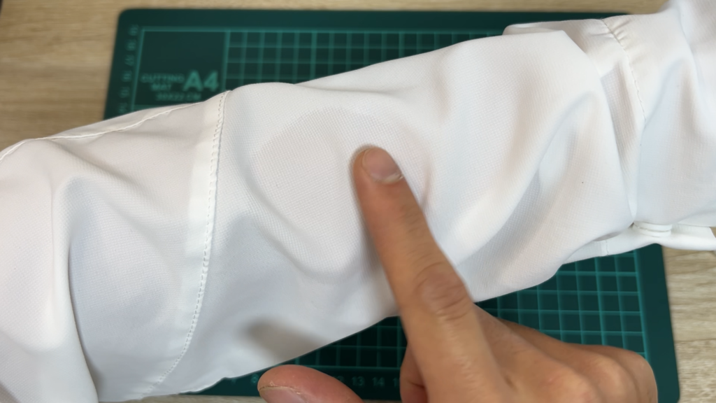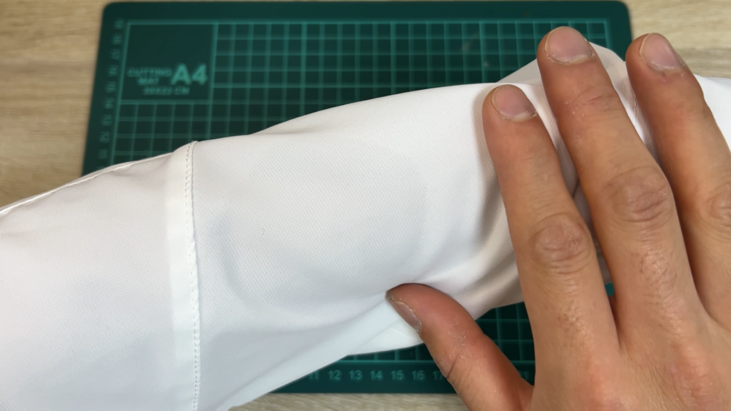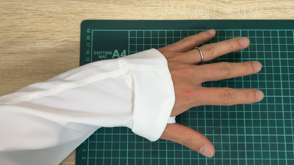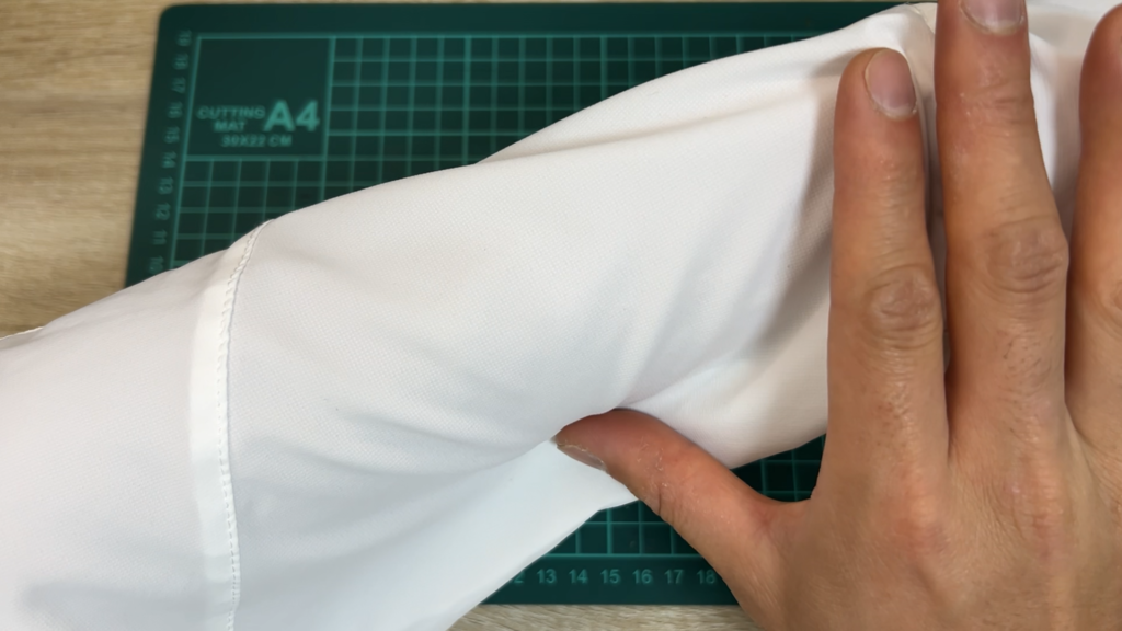 ただし肘の少し下にボタンがあり、7部袖くらいにできるので、気になる方はボタンで調整すればOKです。