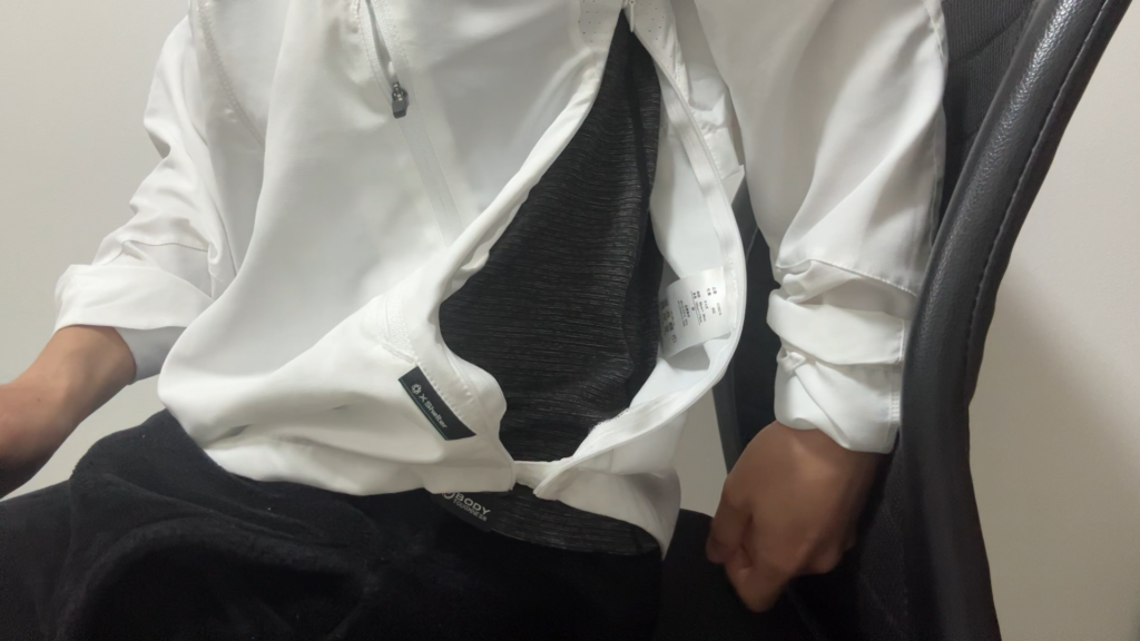 それに加えてXShelterの生地は接触冷感もあって肌に触れるだけでひんやりするので、気過冷却と合わせると夏場でもかなり涼しく感じると思います。