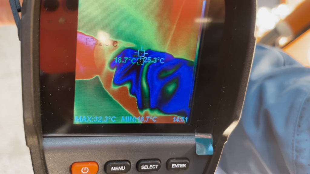 実際、目をつぶってみても青く色が変わったところについては「腕に冷たいものが当たっているな」とわかるくらいに温度が下がっているのを感じました。