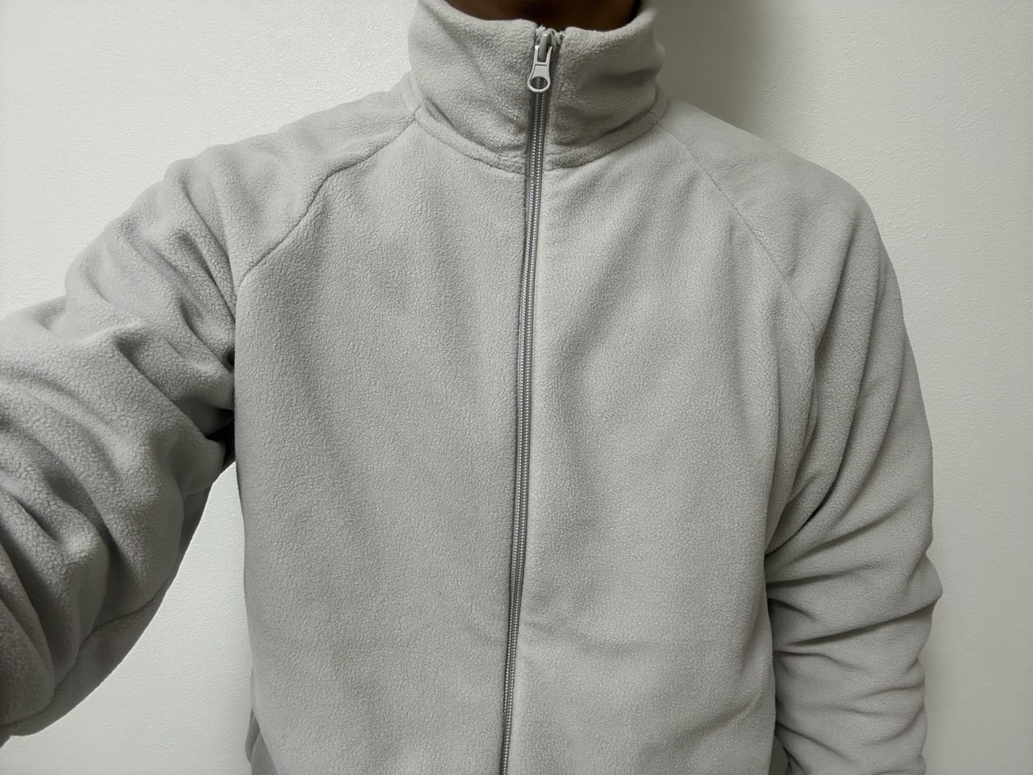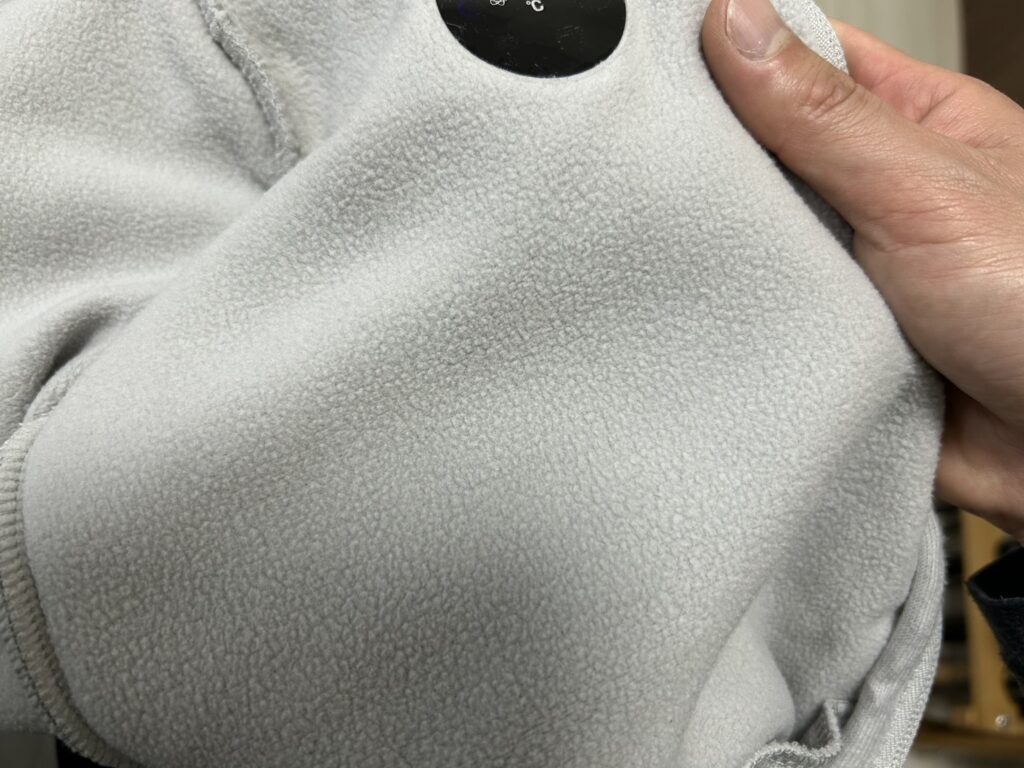 見た目は普通のフリースに見えるのですが、恐らく生地の中に断熱βの生地が入っており、普通のフリースよりもやや重く、硬く感じます。